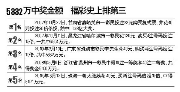 相關(guān)報(bào)道:珠海5332萬中獎(jiǎng)金額 福彩史上排第三