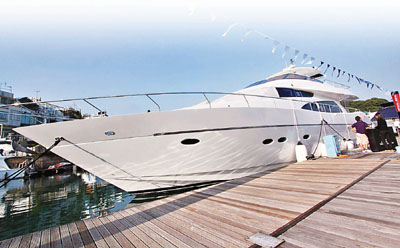 西貢匡湖游艇會昨日起舉辦為期4日的“國際游艇展”,有來自臺灣、法國、英國和美國等共59個參展商,展出逾百艘游艇,并有附設釣魚塔的游艇,展品總值約6億元?锖瓮偨浝韰峭痄乇硎,隨著經濟好轉及不少內地買家來港選購游艇。