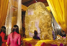 中新網1月19日電 據香港《文匯報》消息,越南一間珠寶公司昨日展示一塊價值200萬美元(約1,552萬港元)的罕見巨型翡翠,計劃由一支共50名藝術家和雕刻家組成的隊伍,花2年時間,把這塊重35噸的翡翠,雕成約10呎高、20噸重的全球最大玉佛,并打算申請列入《吉尼斯世界紀錄大全》。