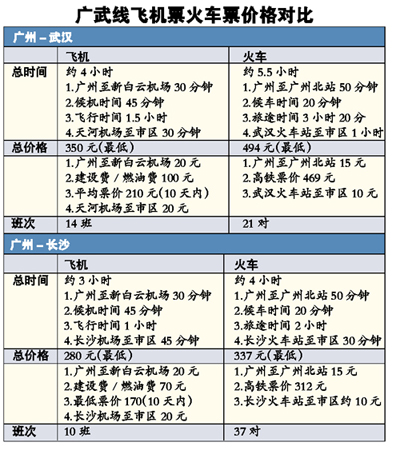 從此可以看出,武廣沿線,飛機票便宜過火車票已經成為常態。