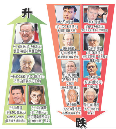 贏家有經營超級市場的莫里森,身家上升1.6億英鎊。《哈利波特》電影系列的男主角丹尼爾雷德克里夫的身家暴漲5成至3000萬英鎊。