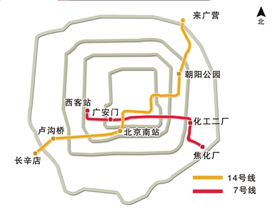 北京地鐵7號(hào)線與14號(hào)線路線圖