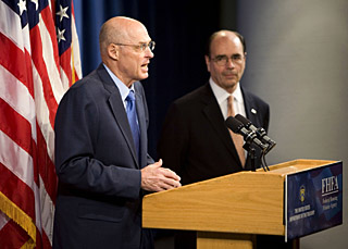美國財政部長亨利·保爾森7日在新聞發(fā)布會上宣布,國會今年7月份為監(jiān)管住房抵押貸款機構(gòu)而批準(zhǔn)成立的聯(lián)邦住房金融署將接手“兩房”日常運作。