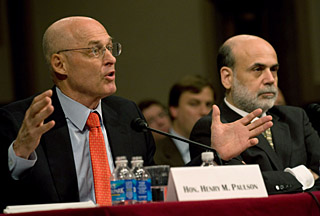 23日上午,美國財政部長保爾森、美國聯邦儲備委員會主席伯南克和美國證券交易委員會主席考克斯在國會作證,敦促國會議員盡快批準總額達7000億美元的金融救援計劃,并警告說如果不盡快批準,美國的金融市場和經濟增長將受到嚴重威脅。