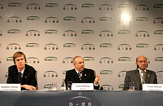 二十國集團財政部長和中央銀行行長(G20)2008年年會9日在巴西圣保羅閉幕,與會代表一致認為有必要改革目前的國際金融體系,采取共同行動應對全球金融危機。