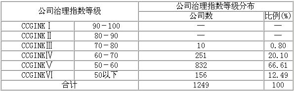 由此可見,我國絕大多數(79.10%)上市公司的公司治理水平不高(在60分以下),如不努力加以改善,難以實現可持續發展。