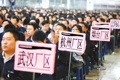 一家公司來自全國不同廠區的員工正在聽專家講解《勞動合同法》。江 成攝