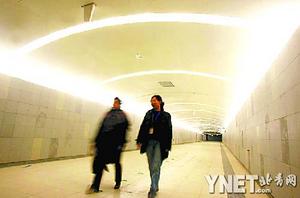 記者在“金臺夕照”站地下一層站臺看到,C出入口和新址的通道施工仍在緊張進行。坐地鐵10號線到央視新址的乘客,只需要通過“金臺夕照”站C出入口就可以直接進入央視大樓。記者注意到,C出入口指向燈箱上直接標示“中央電視臺”,這是北京地鐵首次將單位名稱標入地鐵指向燈箱。