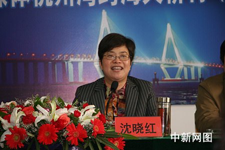 中新網嘉興4月17日電 全國網絡媒體杭州灣跨海大橋行17日來到嘉興海鹽,海鹽杭州灣大橋新區相關負責人就開發區相關情況作介紹。