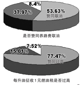 在是否贊同養(yǎng)路費(fèi)取消,改成一升油征收1元燃油費(fèi)的調(diào)查中,83043人贊成費(fèi)改稅,占53.63%,有58799人反對(duì)費(fèi)改稅,占37.97%,而另有13003人表示不好說(shuō),占8.4%。該調(diào)查顯示,到記者截稿為止,贊同費(fèi)改稅的網(wǎng)民超過(guò)半數(shù),顯著高于其他兩種意見。