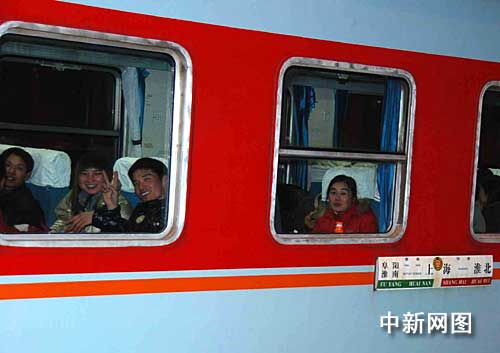 據杭州鐵路公安局馬警官介紹,這春運第一車是由杭州開往阜陽的,但由于是一趟臨時加班車,所以車身上依然掛的是上海到淮北的牌子。同時該車乘務員告訴記者,該車在加了車廂后,現在共有17節車廂,而從杭州站上車的旅客就有1800多人,超員已在百人以上了。“17節肯定是不夠的,路上過站還得有人要上,可現在光杭州首發站,就連餐車里都坐滿了人,前面還有幾節車廂還有好多沒座票的人站著呢。”馬警官指著餐車車廂說道。(完)
