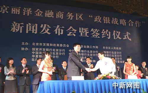 簽約儀式上,北京麗澤金融商務(wù)區(qū)開(kāi)發(fā)建設(shè)指揮部辦公室與國(guó)家開(kāi)發(fā)銀行、建設(shè)銀行、中國(guó)銀行、農(nóng)業(yè)銀行、工商銀行、交通銀行、華夏銀行、北京農(nóng)商行、興業(yè)銀行、北京銀行、中信銀行、民生銀行等12家銀行的北京分行,分別簽署了“政銀戰(zhàn)略合作”協(xié)議。