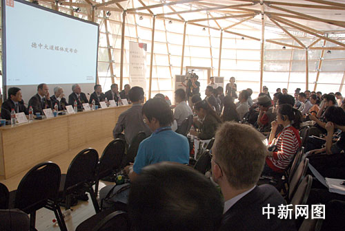 23日下午,“德中大道”開幕式新聞發(fā)布會在漢口江灘舉行,德國駐華大使施明賢博士、武漢市副市長袁善臘等出席。走進(jìn)“德中大道”,映入眼簾的是一座座由中國傳統(tǒng)建筑材料竹子搭建成的展亭。市民可通過各個展亭,了解德國在環(huán)保、節(jié)能等諸多領(lǐng)域先進(jìn)理念。