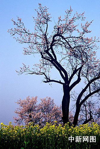 中新網新密3月18日電(記者 趙暉 通訊員 項陽)“忽如一夜春風來,千樹萬樹杏花開。”18日,記者在河南新密神仙洞景區看到,野生杏樹由東向西遞次競相吐蕊開花,漫山遍野,如云似霞,成為當地一道奇觀。