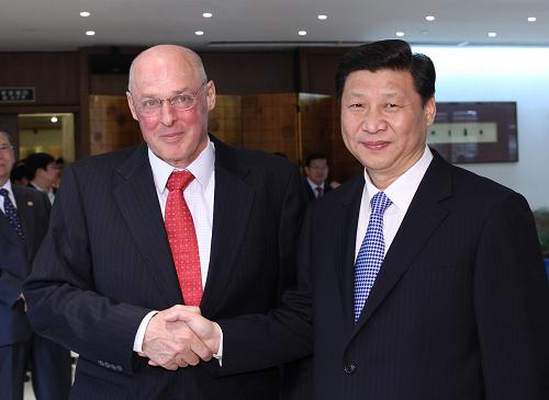 在會見保爾森時,習近平說,中美都是世界上有重要影響的國家。在推動世界經濟復蘇和可持續增長、處理國際和地區熱點問題以及維護世界和平與安全等方面,中美兩國擁有廣泛的共同利益,肩負著重要責任。中方一貫高度重視中美關系,愿與美方共同努力,尊重彼此核心利益和重大關切,妥善處理分歧和敏感問題,加強各領域對話、交流與合作,推動中美關系沿著積極合作全面的軌道向前發展。習近平深入闡述了中方在中美經貿關系、人民幣匯率等問題上的原則立場,期待保爾森繼續發揮影響力,為促進中美在經濟金融領域的對話合作和后國際金融危機時期兩國經濟關系健康穩定發展發揮積極作用。