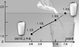 劉先生告訴記者,他家一直訂的衛(wèi)崗天元奶,2007年上半年的時候還是1.2元一瓶,2007年8月份漲到了1.4元,11月又漲了2毛到1.6元,時隔2個月,又要從1.6元漲到1.8元,算起來,這半年里,連漲兩次,每次都漲2毛錢,漲幅已經(jīng)遠(yuǎn)遠(yuǎn)超過10%!面對如此不斷的漲價,劉先生說自己得考慮是不是該少訂點了!