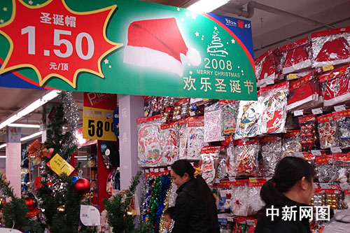 “像這個一米多高的圣誕樹,去年要賣一百左右,現在搞優惠促銷,五十塊錢都不到。”杭州市延安路某商店的工作人員說,商店借節造勢,商品往往熱銷,但今年由于遭遇金融危機,商家只好搞促銷,并紛紛推出優惠折扣來刺激消費。