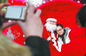 國(guó)友人聚集的地方,馬路上車燈紅彤彤一片。記者從車上電臺(tái)里聽說,有不少急性子怕堵車的師傅都打算提前收工,回家睡覺“慶祝”平安夜。