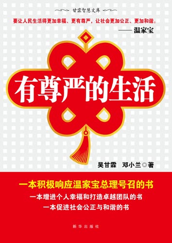“有尊嚴的生活”的具體內容是什么、如何讓自己和別人擁有更有尊嚴的生活、有關部門和社會各界怎樣讓人民生得更有尊嚴?為了回答這些問題,新華出版社與著名暢銷書作家吳甘霖、鄧小蘭聯手,策劃出版了《有尊嚴的生活》一書。