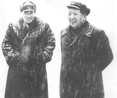 1953年,羅瑞卿陪同毛澤東在雪中視察