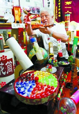 ▲ 走進老李在勁松四區的小家,立刻被桌上、墻上、地上的數百個各式各樣的萬花筒所吸引。擺弄著這些心愛的寶貝,老李臉上流露出孩子般的笑容。