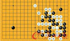 比賽過程:我國手下至第33手,其實還是在布局階段,使出“鎮神頭”的絕招,日本王子俯首稱臣。