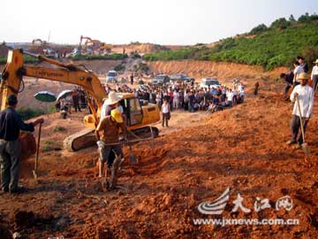 昨日,為保證發掘工作的順利進行,警方已經在發掘現場拉起警戒線。在古墓上方的山坡上,工人們正在用鐵鍬清理黃土。由于圍觀群眾增多,當地警方不得不牽出防暴犬維持秩序。目前,當地警方增派警力,駐守于古墓旁,24小時守護,防止不法分子破壞古墓。