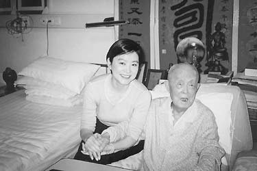 金秋北京,秋高氣爽。那天下午,我陪著林青霞以及金圣華夫婦驅車來到301醫院。因為事先季老助手楊銳女士已經為我們的來訪辦好了手續,所以這次進入季老病房比較順利。我曾經想像過這次美女與大師的忘年會晤,會是多么的不同尋常,可是此刻映入眼簾的,卻是常見的極為普通的一次病房探視。這天季老端坐在病床上,神態比我去年看望他時似稍顯遲緩,但氣色、精神都很好。為了靠近與季老講話,我們把房間內的座椅都挪近病床。當林青霞與季老握手時,我對季老說:“您知道嗎?她就是臺灣的影星林青霞。”季老面帶笑容回答:“全世界都知道!边@句話引得在場的人都笑了,原來季老對演藝圈也并不陌生。林青霞來京前,特意在香港買了一條米色羊毛圍巾帶來贈送季老,此時她親手給季老圍上這條圍巾,這個場面引得我們連忙不停地閃光照相。隨后我向季老介紹,林青霞現在對文學的興趣增強,也熱心在寫文章。林青霞接著對季老說:“我讀過您寫的文章,您說要多讀世界文學名著,我現在就是盡力多讀!奔纠弦宦犨B說:“這樣很好。”