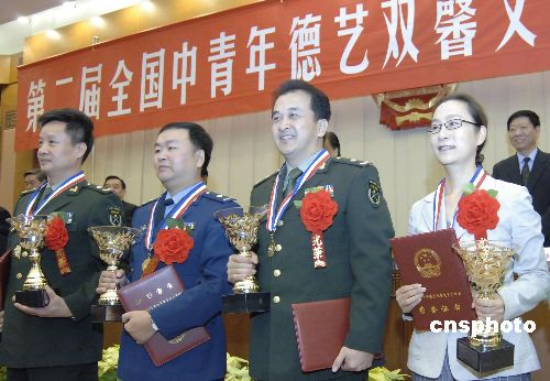 這一由人事部和中國文聯(lián)聯(lián)合開展的評選表彰活動(dòng)始于二00四年,當(dāng)年授予三十名藝術(shù)家“全國中青年德藝雙馨文藝工作者”榮譽(yù)稱號(hào),此次則擴(kuò)充至五十六人,涵蓋舞蹈、美術(shù)、音樂、曲藝、攝影、影視等各門類,彭麗媛、鞏漢林、黃宏、閻維文等一批觀眾耳熟能詳?shù)奈乃嚸餍牵约皹I(yè)內(nèi)知名人士如中國新聞社副總編王瑤(中國首位荷賽大獎(jiǎng)獲得者)等人皆在列。