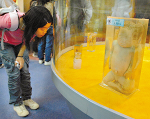 除了古尸和生物類展出,人體科學(xué)教育中心還有很多展區(qū),分別展示了人體胚胎發(fā)生、人類進化等一千余件標(biāo)本。