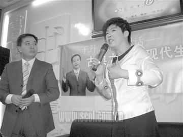 昨日上午,中華書局在圖書訂貨會上邀請著名學者于丹前來捧場,于丹又拉上自己的校友、同為著名學者的康震,兩人一起進行了一場名為“古典之美與現代生活”的學術對話。話題所限,他們的對話內容比較專業和枯燥,現場反應比較極端,有些聽眾昏昏欲睡,另一些卻拿起筆記本記下“名人語錄”。還有不少聽眾開始在臺下議論起這個“學術超女”的衣著打扮,“她穿的衣服好像餐館的制服哦”,“于丹皮膚不怎么好,她應該買好點兒的化妝品!