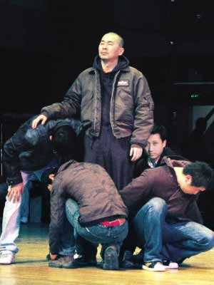 在片場以嚴(yán)厲著稱的尹導(dǎo)在排練場上也不改其作風(fēng),一會(huì)兒忙著指揮工作人員在每個(gè)確定走位處貼上地標(biāo),給每樣道具的位置做標(biāo)記,一會(huì)兒吆喝兩句“精神集中,每一遍都有新要求……”難怪在談到導(dǎo)演時(shí),韓童生毫不諱言:“尹導(dǎo)就像一個(gè)幽靈、魔鬼,他的嚴(yán)格帶給我巨大的壓力,每天的排練都很痛苦,在這種窒息的環(huán)境中我們要做到的就是靈魂出竅。”當(dāng)然,在演員表現(xiàn)精彩的時(shí)候,尹力也會(huì)拿起相機(jī)一陣狂拍,并不時(shí)要求全場演員鼓掌慶賀;而當(dāng)演員表演達(dá)不到要求時(shí),尹導(dǎo)更是親自做起了示范,其生動(dòng)的肢體語言不時(shí)引起全場的爆笑。