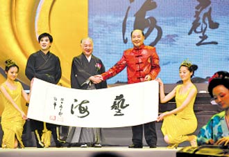 出席晚會(huì)并為獲獎(jiǎng)演員頒獎(jiǎng)的還有知名藝術(shù)家秦怡、嚴(yán)順開、李炳淑、王夢(mèng)云、張先衡等。晚會(huì)最大看點(diǎn)是三度白玉蘭獎(jiǎng)榜首計(jì)鎮(zhèn)華與坂田藤十郎的現(xiàn)場(chǎng)書法表演。深受觀眾喜愛、連獲兩屆“白玉蘭”的青年舞蹈家黃豆豆,則同時(shí)以舞蹈來演繹書法的風(fēng)骨神韻。這一結(jié)合了書法、舞蹈、古箏、動(dòng)漫等多種元素并浸潤(rùn)著中日兩國(guó)藝術(shù)家友誼的現(xiàn)場(chǎng)藝術(shù)交流,再一次印證了本屆頒獎(jiǎng)晚會(huì)“香飄四海”的主題和“海納百川”的精神。(記者端木復(fù))
