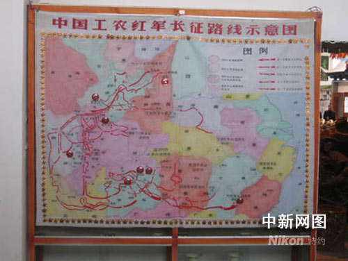 現場的藏品之一:中國工農紅軍長征路線示意圖。 龐文娟 攝