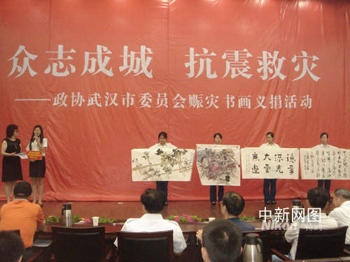 為此,武漢市政協23日貫徹中央抗震救災戰略部署,發揮人民政協的優勢和特色,組織書畫藝術家、企業家進行書畫義捐、拍賣活動,全力援助災區生產自救和災后重建工作。