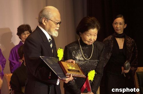 長(zhǎng)年積極從事中日文化交流活動(dòng)的日本松山芭蕾舞團(tuán)團(tuán)長(zhǎng)清水正夫和夫人松山樹子,曾獲得中國文化部頒發(fā)的“文化交流貢獻(xiàn)獎(jiǎng)”后百感交集。 中新社發(fā) 王健 攝