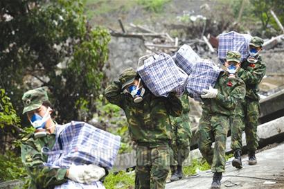 張新是四川省檔案局副局長,著名的檔案專家,他這次專門會同當地檔案部門對北川檔案館進行搶救性發掘。“這次搶救性挖掘難度非常大,必須要掀開‘蓋’在廢墟上的這層樓面。”“通信連、尖刀連、接力連……上!”隨著300多名官兵呈扇形“包圍”廢墟,戰士們從廢墟頂端一直排到地面,挖掘、傳遞、裝箱、登記,每一卷“出土”的檔案都經過了無數雙帶著體溫的手,小心翼翼地傳遞著。“找到了,這里有7箱比較完整的檔案。”中午1時許,幾名戰士從兩塊拱立的水泥板下刨出了一箱箱淺藍色檔案柜;焦急等候在一旁的檔案局工作人員趕緊迎上去,面帶喜色。隨著一卷卷記錄羌族政治、文化、經濟等的珍貴檔案“重見天日”,搶救現場的人們臉上露出了如釋重負的笑容。