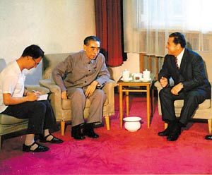 使格夫里列斯庫,來到緊靠中南海的305醫院。當我們走進醫院門廳時,周總理在紀登奎、耿飚同志的陪同下,已經站在那里等候客人。以前,周總理每次會見外賓,總是先期到達會見地點,迎接客人,以示禮貌。此時重病的周總理,依然保持了這種外交禮節和風度。