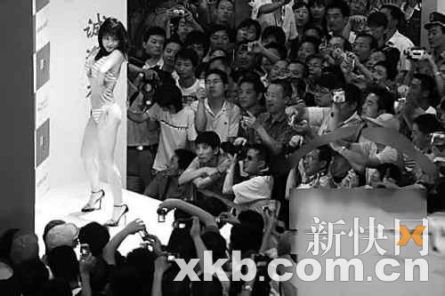 據(jù)上海媒體的報道稱:“現(xiàn)場一個個嫵媚的AV女優(yōu)搖擺著腰肢,擺著一個個撩人的姿勢,眼神里迸射著誘惑的目光,霎時,相機喀嚓聲響成一片。性感AV女優(yōu)的火爆演出,使得展臺前的人流絡(luò)繹不絕,大有水泄不通的陣勢”。相比情趣內(nèi)衣的“含蓄”來說,日本這家企業(yè)造勢活動儼然成為整個成人健康展的一大亮點,吸引了眾多在場觀眾的眼球,各路拍攝器材各顯神通,手機、數(shù)碼相機、攝像機爭相記錄著“秀色盛典”。