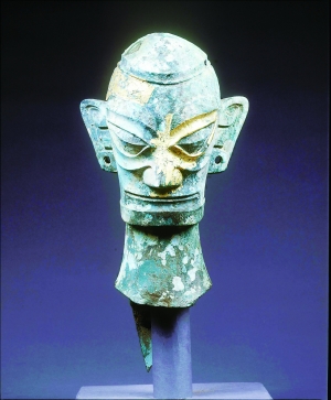 四川廣漢三星堆是中國西南地區一處分布范圍最大、延續時間最長、文化內涵最為豐富的古城、古國、古蜀文化遺址。它因1986年兩座大型祭祀坑的發掘而聞名于世,被評為20世紀中國最重大的考古發現之一。這一遺址的年代據考證在商代中晚期前后,距今約3200至3300年前,共出土金、銅、玉、石、骨器等重要文物1800余件。其中,頗具代表性且造型獨特的青銅縱目面具被認為是人與神的復合體,是古蜀先民頂禮膜拜的偶像。此次展覽中的戴金面罩青銅人頭像、銅跪坐人像、銅太陽形器、銅眼形器、玉戈、玉璋等,都頗具精絕大雅的造型和瑰奇神秘的風格,從各個側面為人們勾勒出一個光怪陸離無限精彩的古蜀社會。