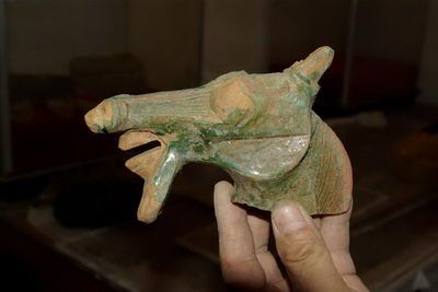 12日下午,記者來到武威市考古研究所文物庫房,文物工作者正在認真地將每一件文物進行整理。記者注意到,除了“雞鴨成群”的壯觀場面外,還有兩只靜臥的大尾巴狗、狀如“牛魔王”的鎮獸,件件令人嘆為觀止,也令在場的文物考古專家贊嘆。