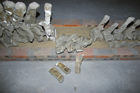 據恐龍博物館館長周遠明介紹,地震發生后,館領導紛紛用電話通知館內值班的保衛人員加強戒備,在保障人身安全的前提下,加強巡邏全力保證國寶化石的安全。昨日上午,館內組織專家對館藏化石的3個倉庫進行清點,除了3號倉庫的防盜門變形無法打開外,其余1、2號倉庫內的珍貴化石大部分完好無損,和平永川龍、太白華陽龍等“鎮館之寶”均安然無恙;不過,有8件恐龍化石發生斷裂,其中,李氏蜀龍標本尾追2、3、4號神經棘與椎體斷裂;天府峨眉龍1號背椎神荊棘斷裂;鸚鵡嘴龍左掌骨脫落。