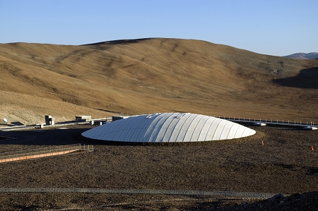 影片的高潮發生在智利的歐洲南方天文臺,這里邦德和他的對手展開了最后的殊死搏斗。該天文臺位于阿塔卡馬沙漠中海拔2400米的山峰上,由德國建筑師奧爾和韋伯設計,條紋狀表面的建筑物埋藏在荒蕪的沙漠下,由玻璃圓頂采光照亮室內的花園和游泳池。由于該建筑坐落在非常偏僻的地方,人們很難有機會親臨現場,因此這部電影是欣賞這座建筑物的絕好機會。有動感的混凝土外表面、泥土色調的內表面、深深的內部透視空間,還有精致的細節……最后,觀眾將從鏡頭里看到它毀滅殆盡。