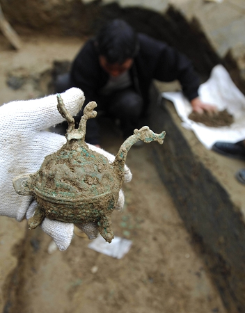 核心提示:近日,考古人員在襄樊市長虹路一建設工地進行搶救性發掘時,發現一大型魏晉早期墓葬,并從該墓葬后室中發掘出玉璧、水晶珠、青銅熏爐等數十件珍貴器物。