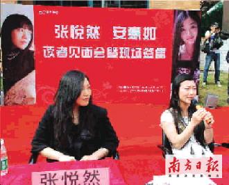 22日中午,“80后”作家張悅然攜同安意如帶著她們的作品《鯉:嫉妒》以及《惜春紀》來到廣州大學城進行讀者見面會暨作品簽售。“美女作家”的頭銜吸引了不少廣東大學生,當天中午,簽售會現場火爆,使得原計劃12點半結束的簽售會延遲到了1點半。簽售會結束后,張悅然與安意如接受了本報記者的采訪。