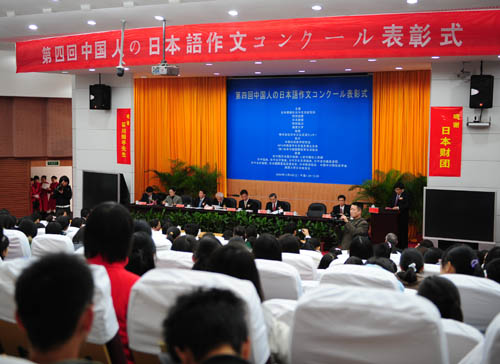 為紀念中日和平友好條約締結30周年和中國改革開放30周年,作為2008日中青少年交流年認定事業之一,由日本僑報社日中交流研究所主辦,日本駐華大使館、人民日報社人民網等支持,日本財團特別贊助的“第四屆中國人日語征文大賽”,于今年3月拉開帷幕,首次分設論文部門和紀實部門,同時首次設立日本大使獎。主題分別為“如何構筑中日雙贏關系”、“我所知道的日本人”。
