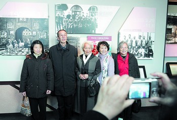 老人們不時拿出手中的相機在先輩們的照片前合影。突然一張在延安拍的合影吸引了大家的目光,老人們在照片上尋找著自己父輩的身影,并興奮地在老照片前合影留念。“這是我伯父,大家過來合張影吧。”周恩來的侄女周秉德叫上劉少奇的女兒劉愛琴等人一起,“咔嚓”一聲留下了美好瞬間。隨后,在一張劉少奇與兒女們的合影中,劉愛琴一眼就認出了當年還是小姑娘的自己以及弟弟妹妹,幸福溢于言表。