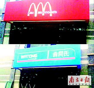 于是,肯德基的遠房表弟“啃他雞”、康師傅的老鄉“康帥博”、王老吉的弟弟“王老古”、中國石油的近鄰“中圍石油”……紛紛被網民貼圖曝光。繼而,又有南京網民發現這些高仿品牌在某地特別集中,遂有山寨店一條街。