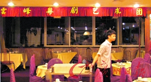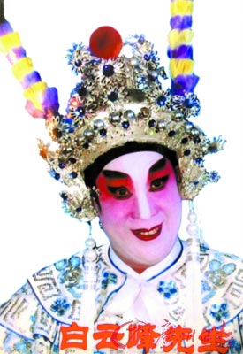 “文革”后,白云峰又操起了唱戲的老行當。12年前,白云峰放棄了國營劇院的鐵飯碗,領著一班樂師和演員,組建了云峰粵劇藝術團!皯虬唷钡闹饕枧_,除了到鄉下慰老臨時搭臺,便是城里的茶樓飯館。白云峰操辦“戲班”盡心盡力,集劇團的老板、師傅、編劇、導演于一身。