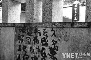北京大學(xué)中文系的研究生小侯是在上周進(jìn)行實(shí)地文史考察時(shí)發(fā)現(xiàn)這一現(xiàn)象的,當(dāng)時(shí)他正籌劃為報(bào)紙撰寫(xiě)有關(guān)北京旅游地理的文章。在他拍攝的照片里記錄了被涂在告知碑背后的綠色文字:“山從此地始,地到墳前終”。字跡凌亂,七扭八歪。